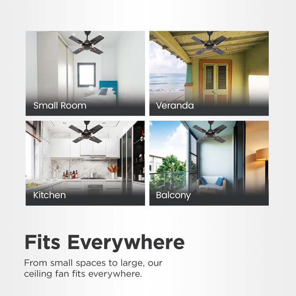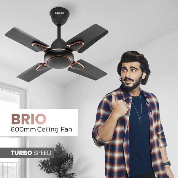 Candes Brio Turbo 600 mm /24 inch Small Ceiling Fans for Home | High Speed, Energy Saver, Noiseless | Small Ceiling Fan for Home, Kitchen Fan, Balcony & Small Room | 2 Yr Warranty | Smoke Brown