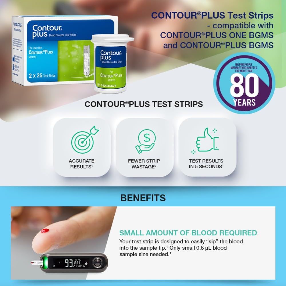 Contour Plus Blood Glucose Test Strip (25 Strips) | Contour Plus Glucometer 25 Test Strips Pack