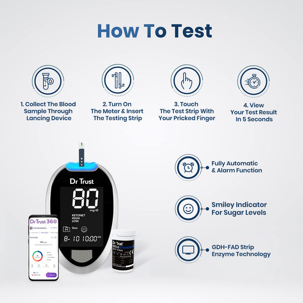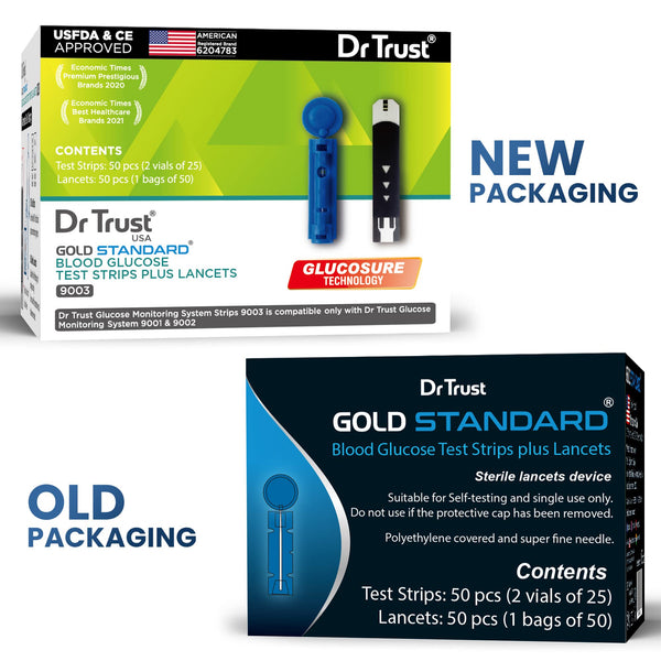 Dr Trust USA Gold Standard Blood Glucose Test Strips Plus Lancets - 50 Strips (Black)