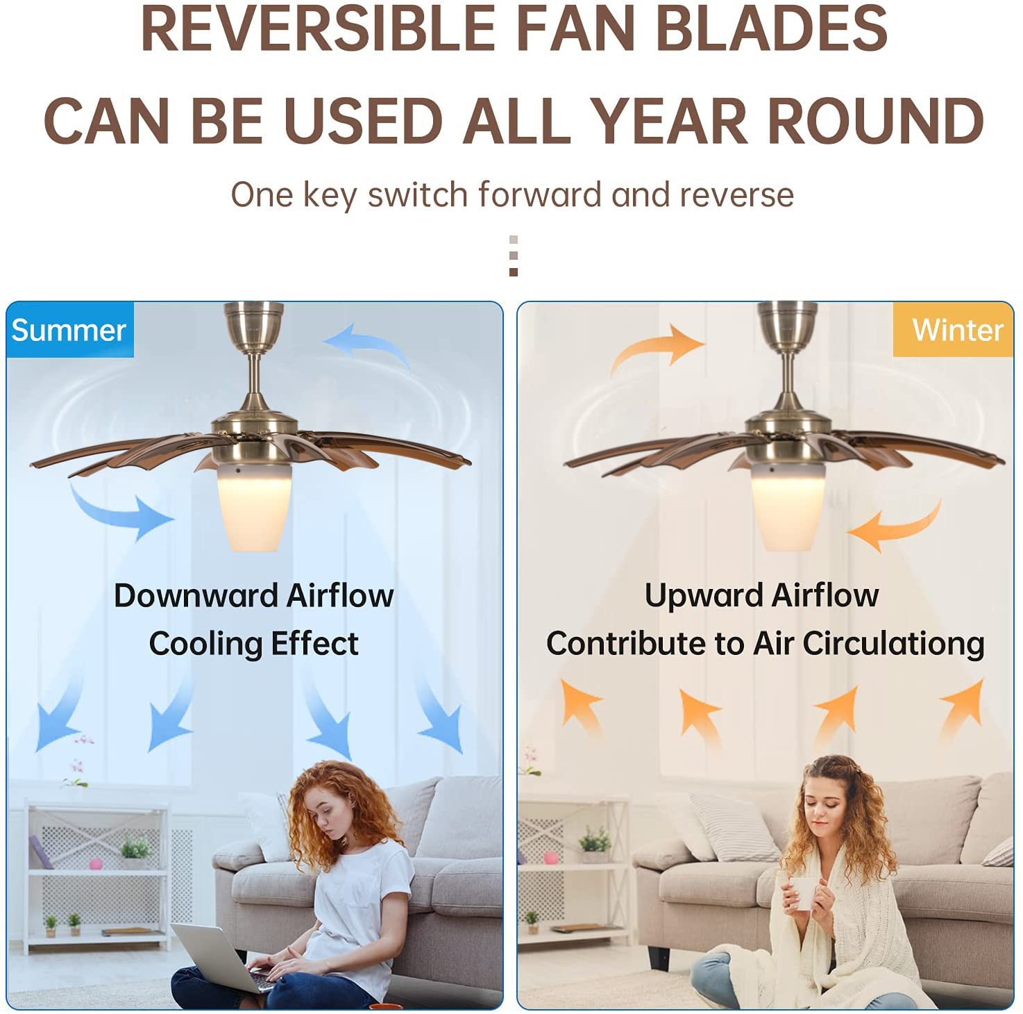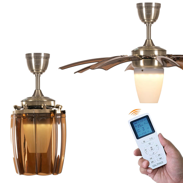oltao Susan Chandelier Ceiling Premium Deluxe Fan - Golden Finish | with BLDC Motor, Reverse Air Flow for Summers & Winters, 8 Retractable Blades, LED Light & Remote Control