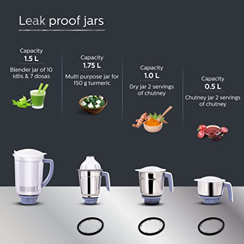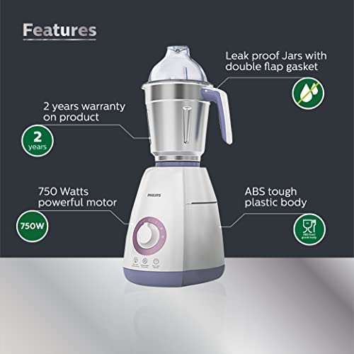 Philips Viva Collection HL7701/00 Mixer Grinder, 750 Watts, 4 Jars (Elegant Lavender and White)