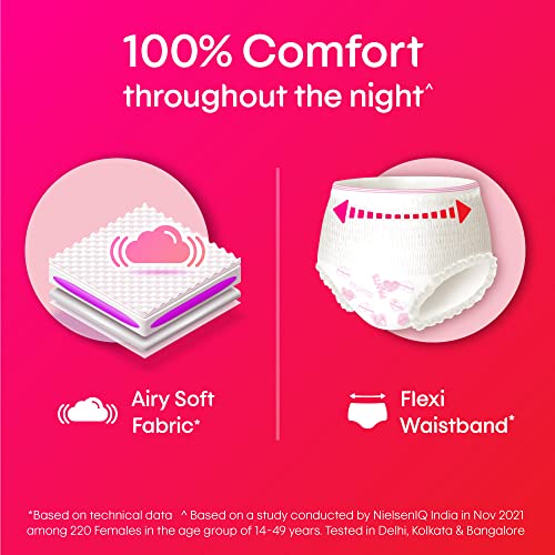 Kotex Overnight Period Panties (Small/Medium size, pack of 10 panties) for heavy flow period protection | with 360 degree anti-leakage design & airy-soft fabric | 1 panty = 3 regular pads