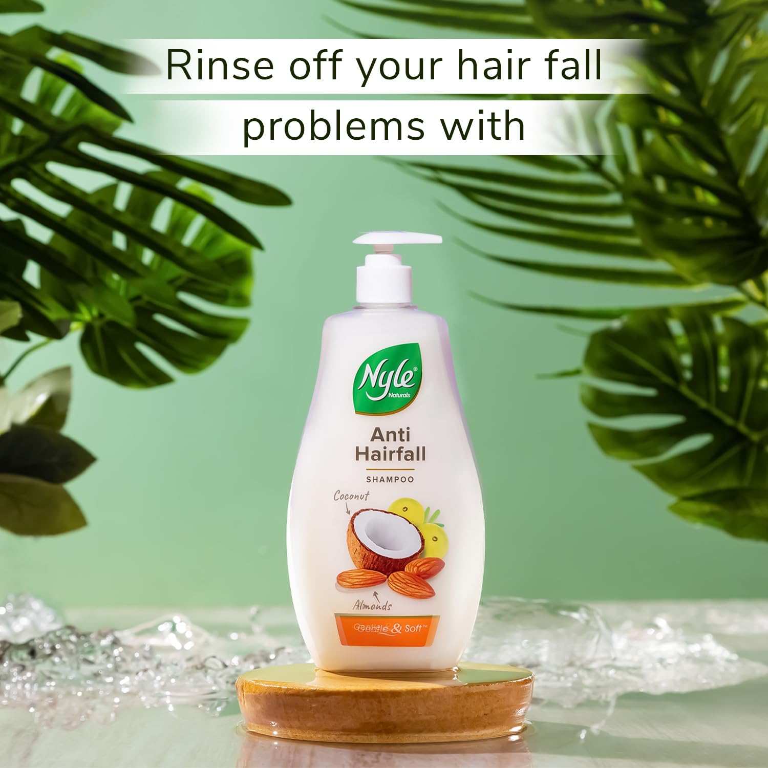 Nyle Naturals Anti-Hairfall Shampoo | For Hairfall Control | With Coconut Milk, Badam and Amla |Gentle & Soft Shampoo For Men & Women |400ml