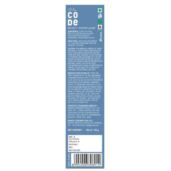 4x Wild Stone Fresh Code Steel Long Lasting No Gas Body Perfume Spray For Men, 150Ml - Pack of 4