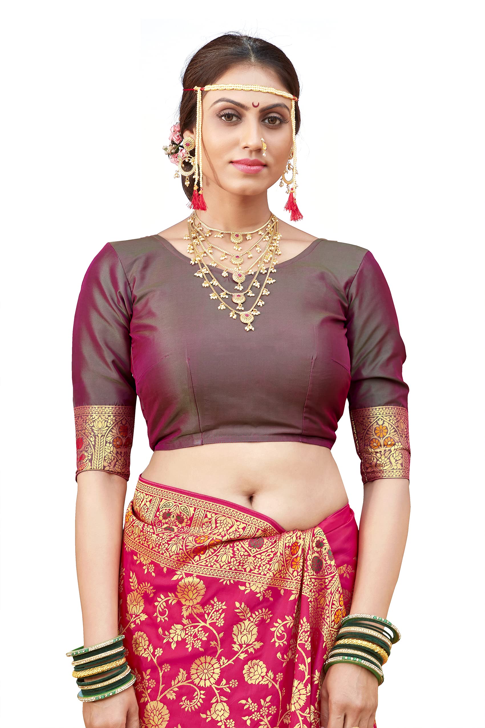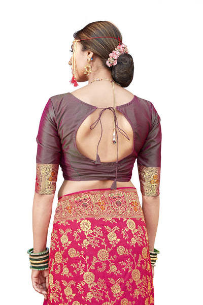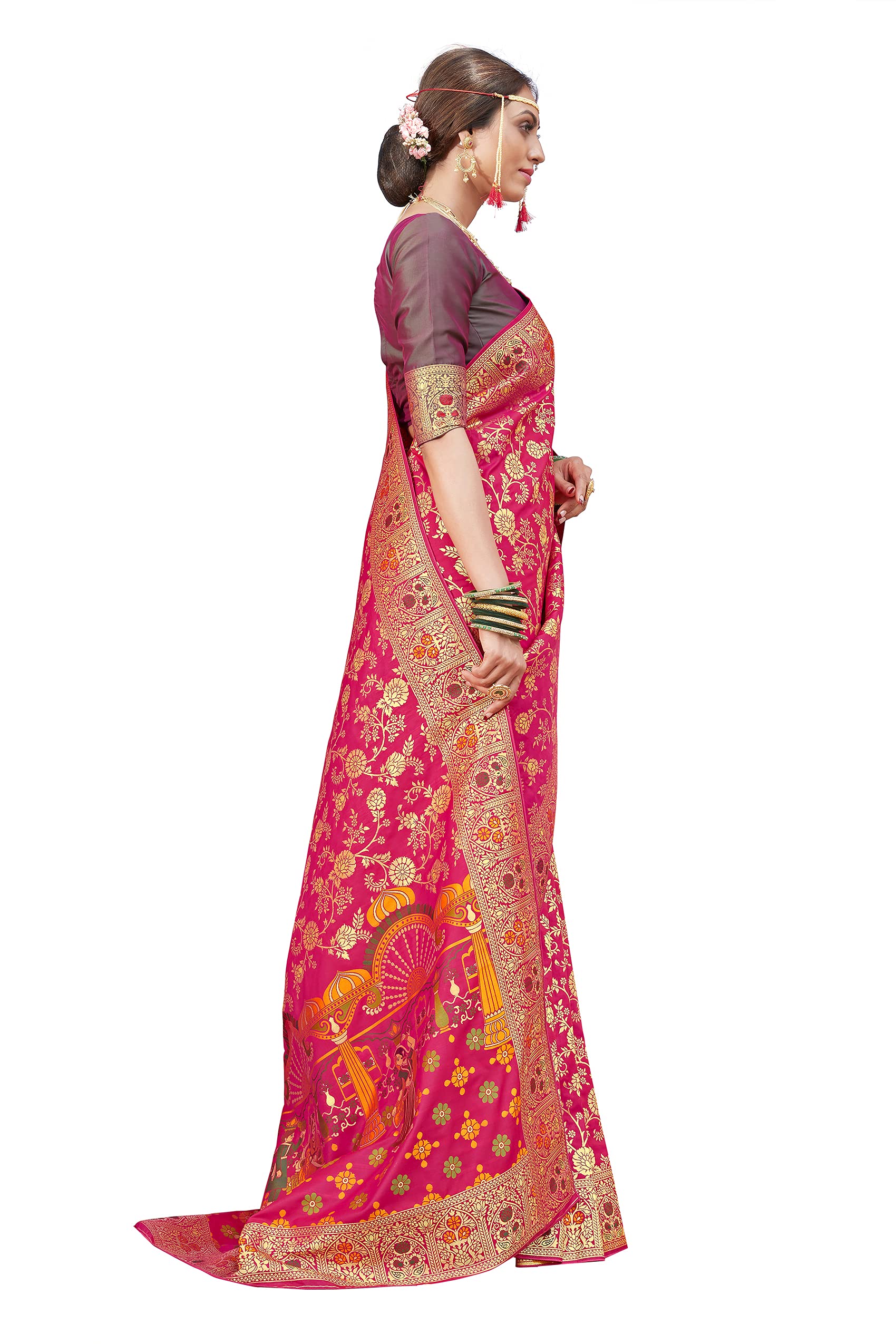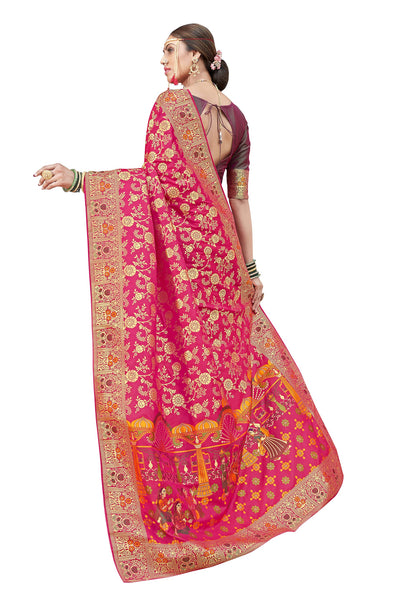 Monjolika Fashion Women's Banarasi Silk Saree With Blouse Piece. (Rani Pink-3804)
