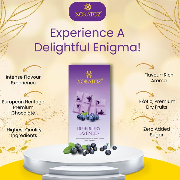 XOKATOZ Exotic Premium Chocolate - 1 Blueberry Lavender Flavoured White Chocolate Bars - Gift set - Pack of 1, 75g (75g x 1)