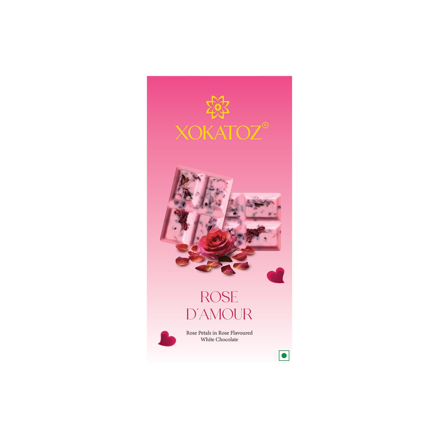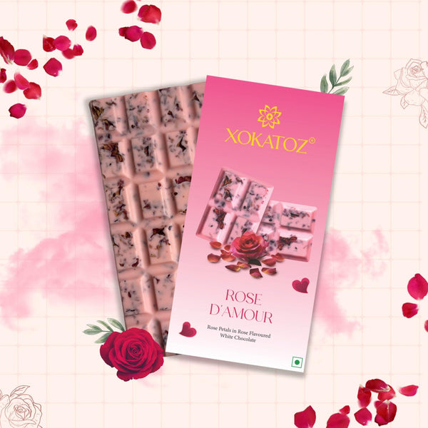 XOKATOZ Exotic Premium Chocolate - 1 Rose D’Amour Flavour - Flavoured White Chocolate Bars - Gift Set - Pack of 1, 75 gm (75 gm x 1)
