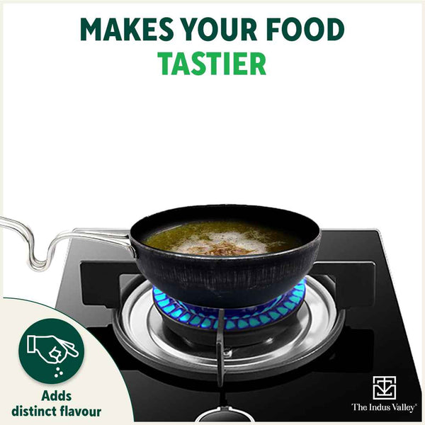 100% Pure Sheet Iron Tadka Pan with Stainless Steel Handle, Pre-seasoned, Toxin-free, Induction