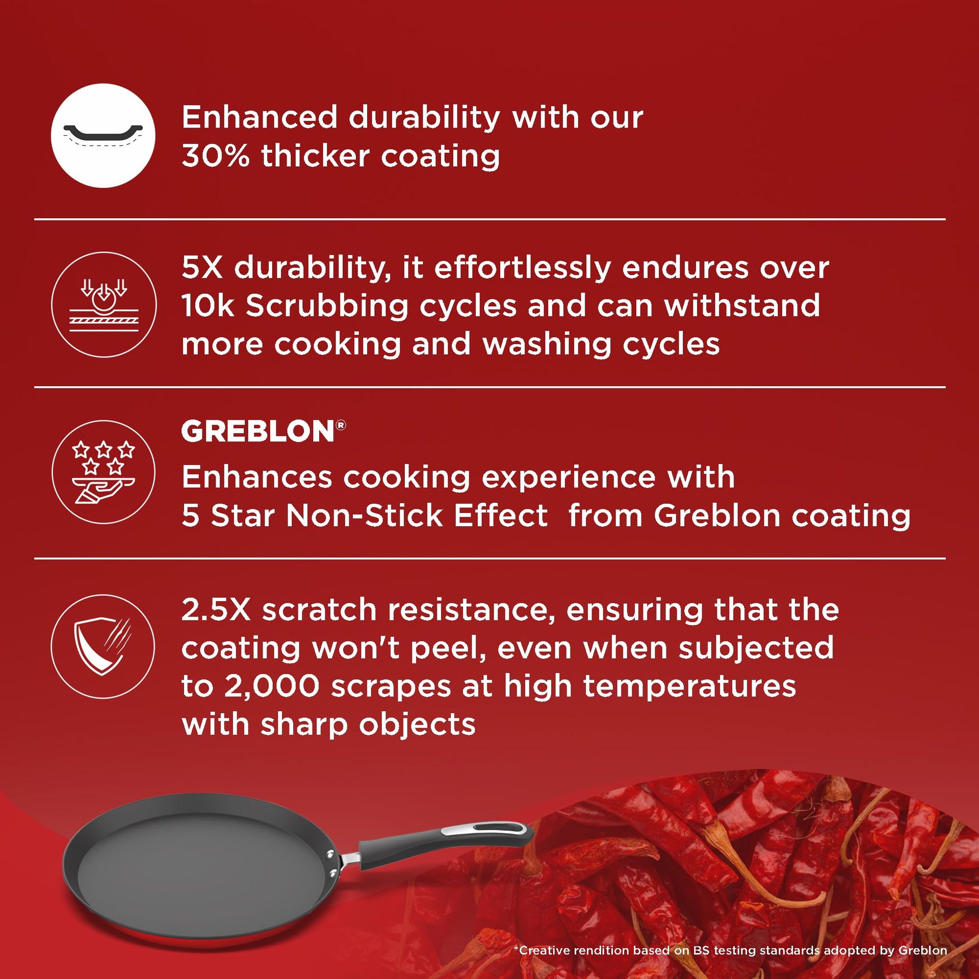 ‎Preethi Dura Collection Non Stick Tawa, 28 cm, Gas & Induction Compatible, 5 Star Non Stick Effect, Chilly Red